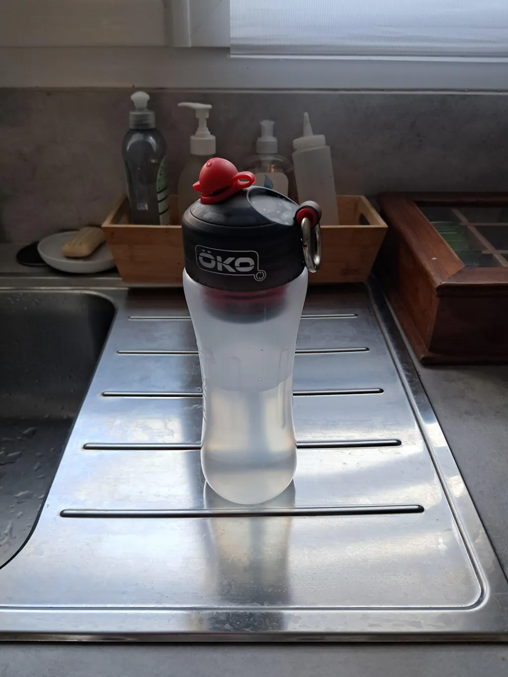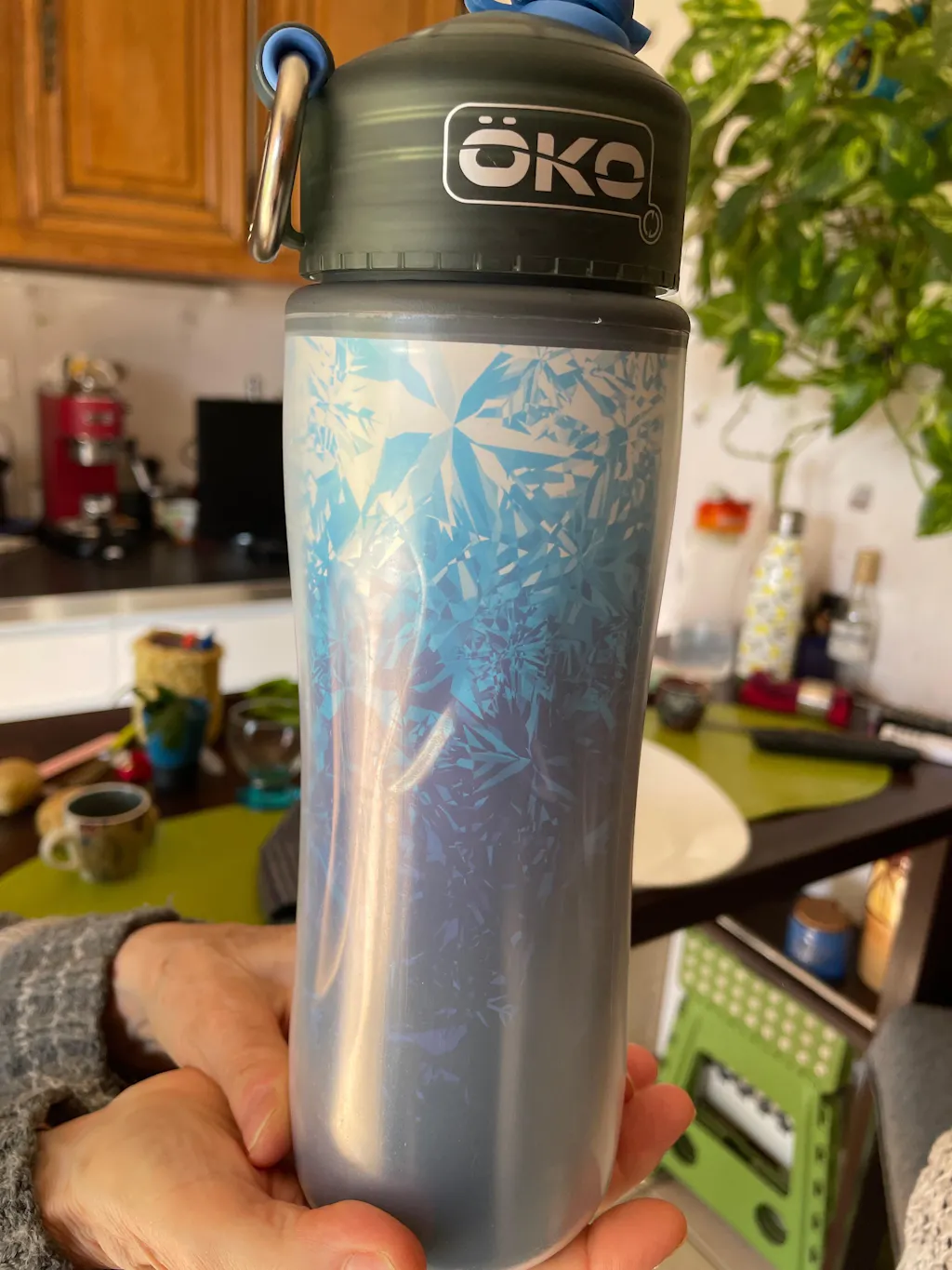 Ça fait plusieurs mois maintenant que j’utilise ma gourde öko tous les jours (je viens d’en racheter une j’avais perdu la précédente). C’est devenu un objet que je mets dans mon sac aussi automatiquement que mon téléphone et mon portefeuille. Je buvais pas assez d’eau parce que je suis super sensible au goût chimique ou calcaire de la plupart des eaux du robinet, et maintenant ça n’est plus un sujet, je bois mon litre et demi d’eau minimum par jour avec plaisir.